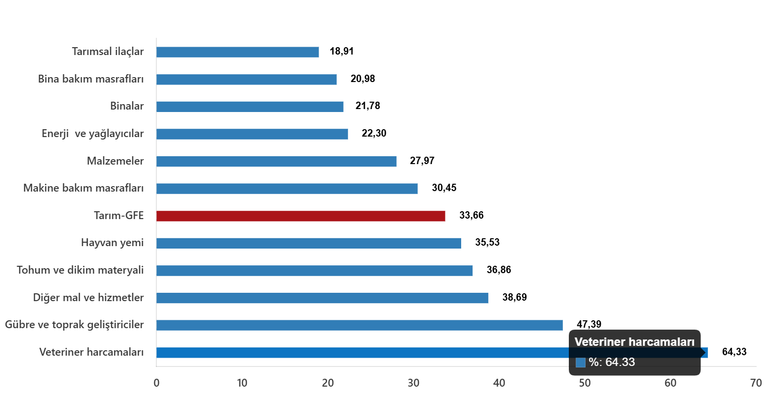 Tarımsal girdi fiyat endeksi (Tarım-GFE) yıllık %33,66 arttı, aylık %2,04 arttı