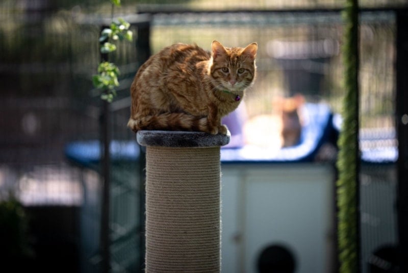 Proje kapsamında kurulan, kapalı ve açık iki bölümden oluşan alan, sevimli kedilerin doğal yaşam ihtiyaçlarına uygun şekilde tasarlandı.