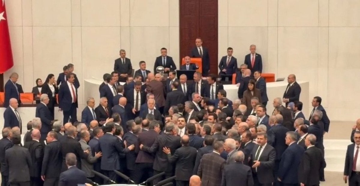 Tansiyonun yükselmesiyle milletvekillerinin birbirini ittiği, bazı vekillerin ise yumruk savurduğu görüldü.