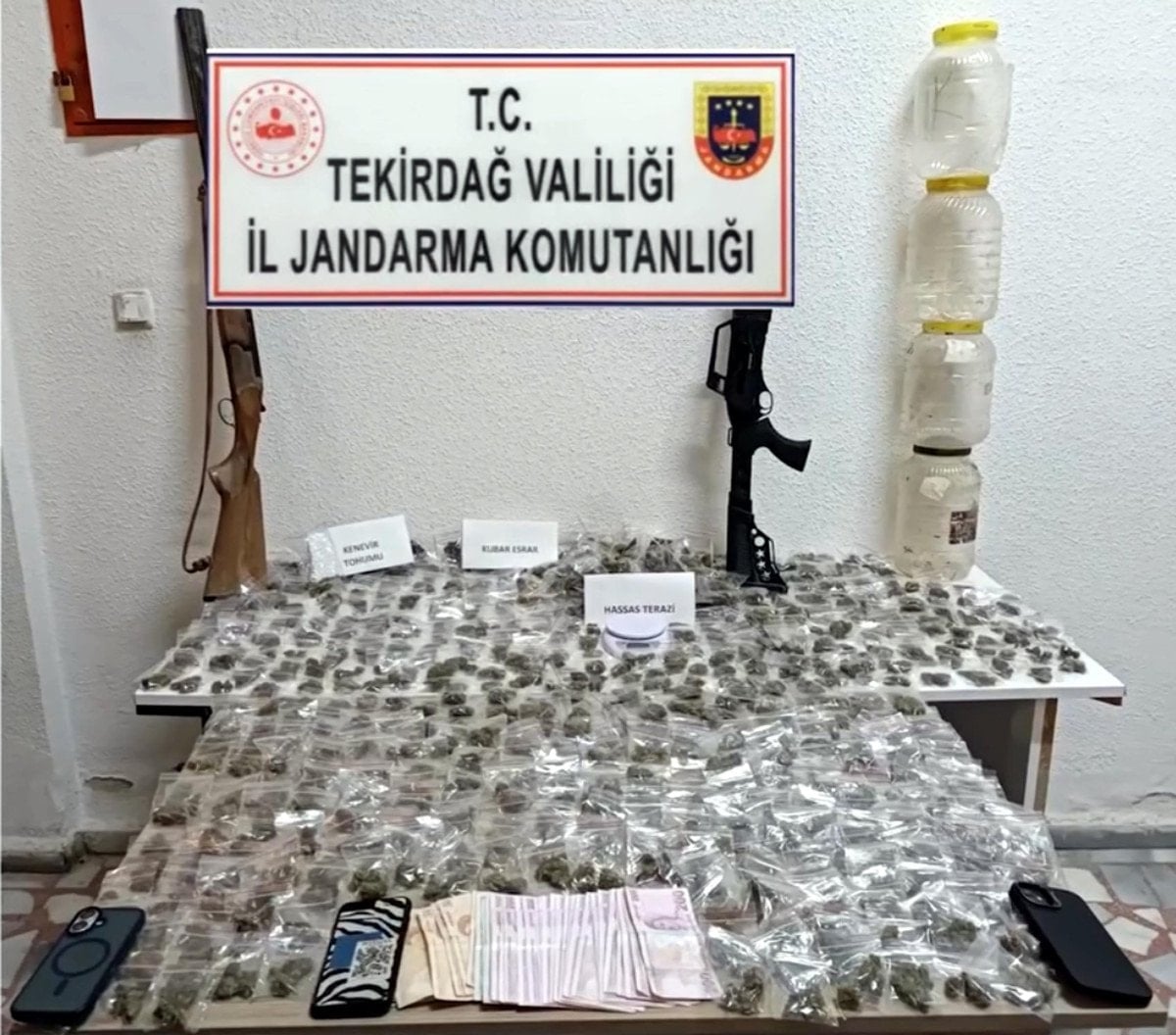 Tekirdağ Marmaraereğlisi İlçe Jandarma Komutanlığı ile Jandarma Suç Araştırma Timi’nin (JASAT) yaptığı çalışmada ilçede Y.K.’nin evinde yüklü miktarda uyuşturucu bulunduğu ve ticaretini yaptığı belirlendi.