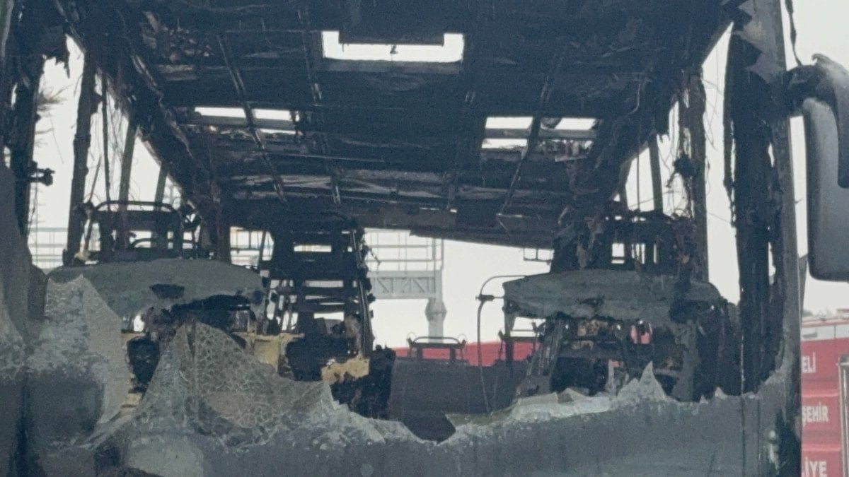 Uyarı üzerine otobüs güvenli bir noktada durdurulurken, yolcular hızla araçtan indirildi. Tahliyenin tamamlanmasının hemen ardından otobüste yangın çıktı ve alevler kısa sürede aracı sardı.