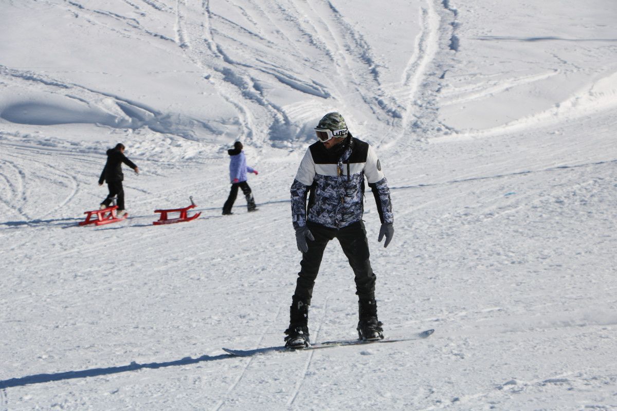 Kar kalınlığının 65 santimetre olduğu merkezde kayakseverler, kayak ve snowboard yaparken, kayak yapmayı bilmeyenler ise kızaklarla kaydı.