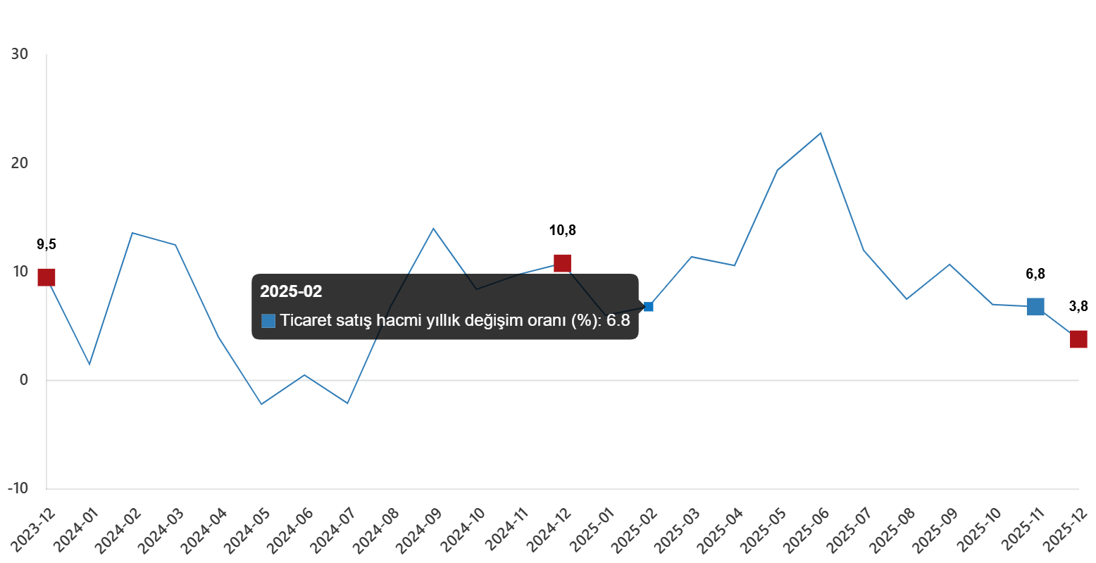 Ticaret satış hacmi yıllık değişim oranı (%), Aralık 2025
