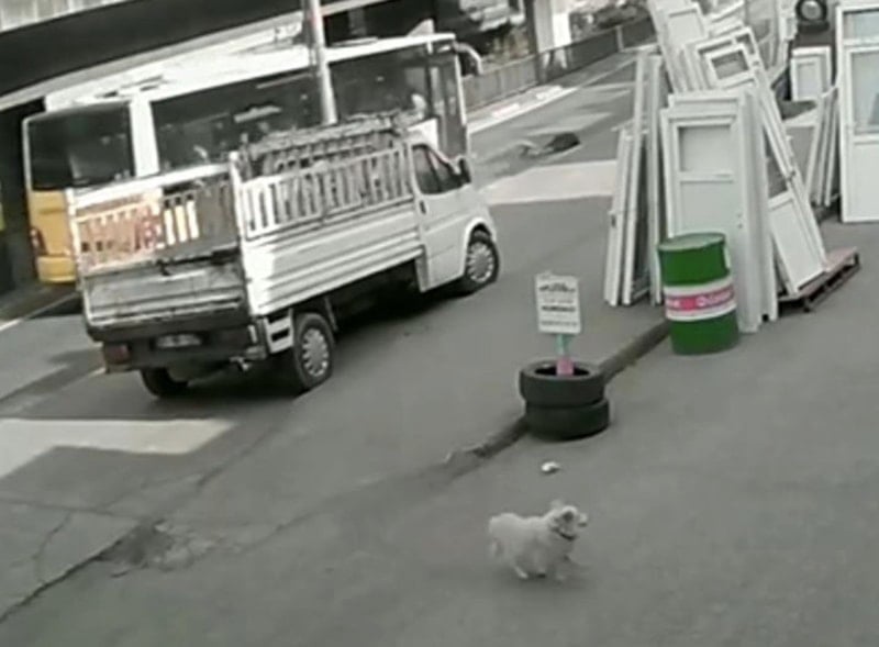 Trabzon’da başıboş köpek, can yaktı: Kaçarken otobüsün altında kaldı