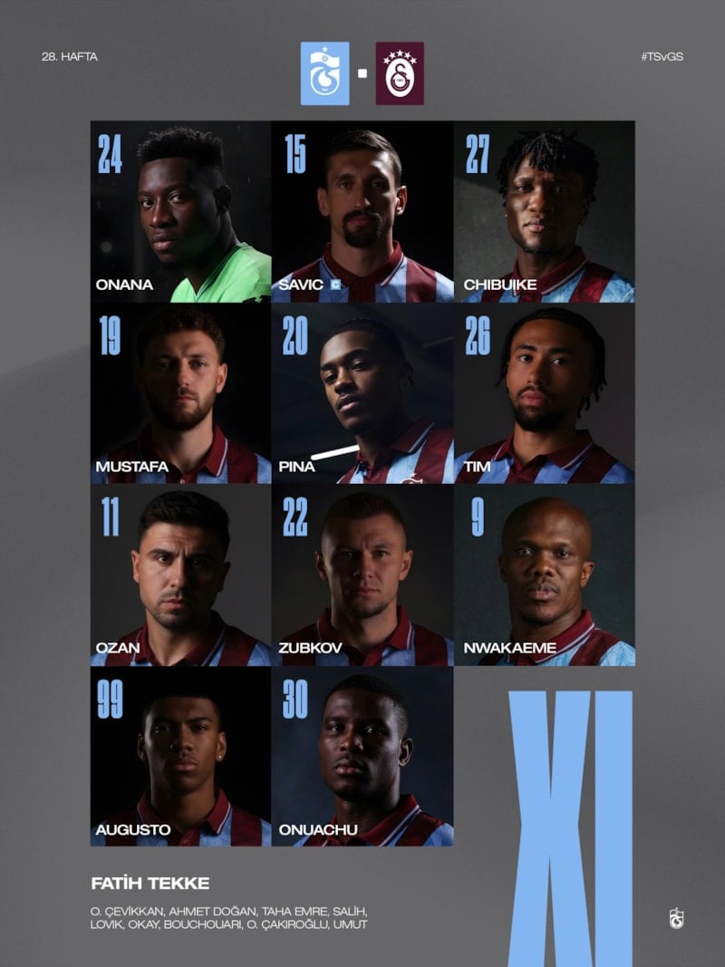 Trabzonspor – Galatasaray maçının ilk 11’leri