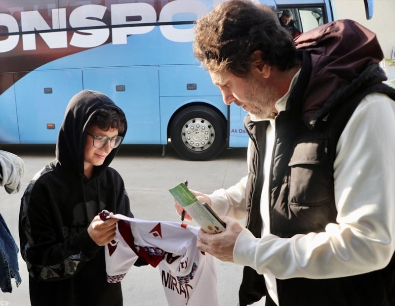 Havalimanında taraftarlar, teknik direktör Fatih Tekke ve bordo-mavili oyunculara ilgi göstererek forma imzalattı.