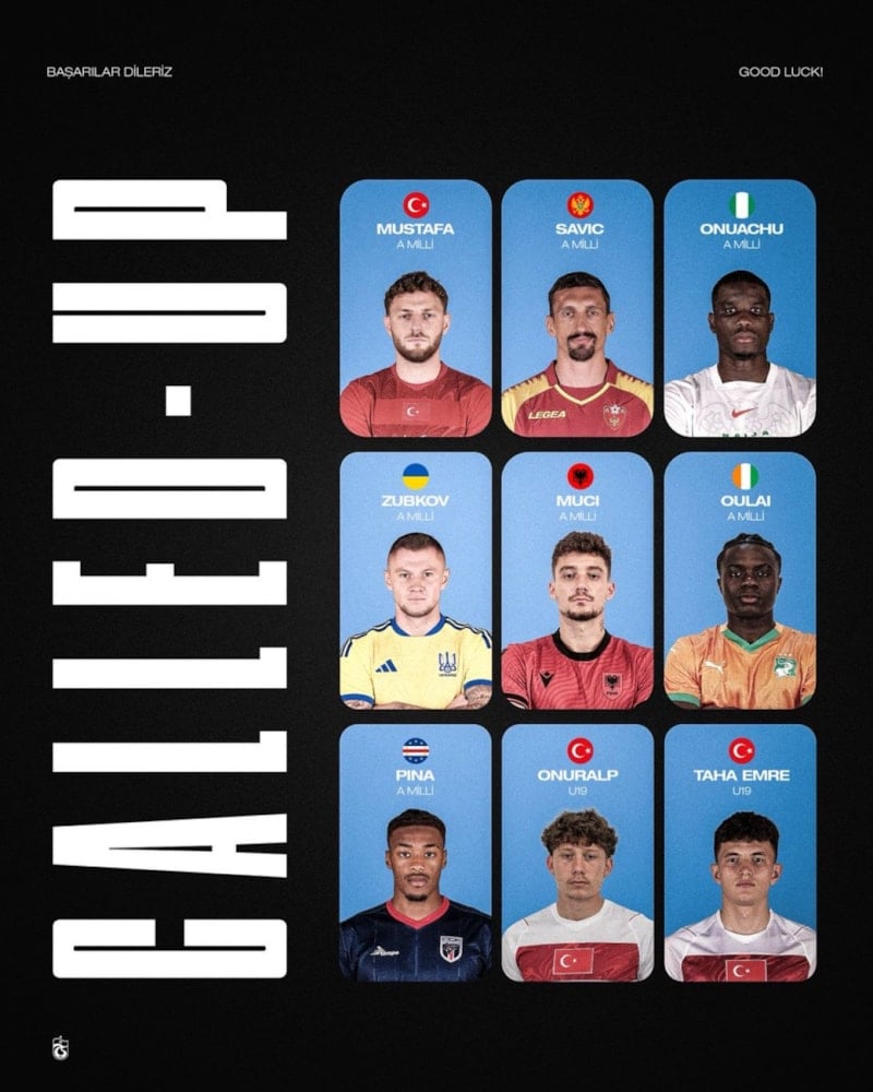 Trabzonspor’dan A Milli Takım düzeyinde Türkiye, Karadağ, Nijerya, Ukrayna, Arnavutluk, Fildişi Sahili ve Yeşil Burun Adaları’na oyuncu gönderilirken, genç milli takımlarda da iki isim kadroya çağrıldı.