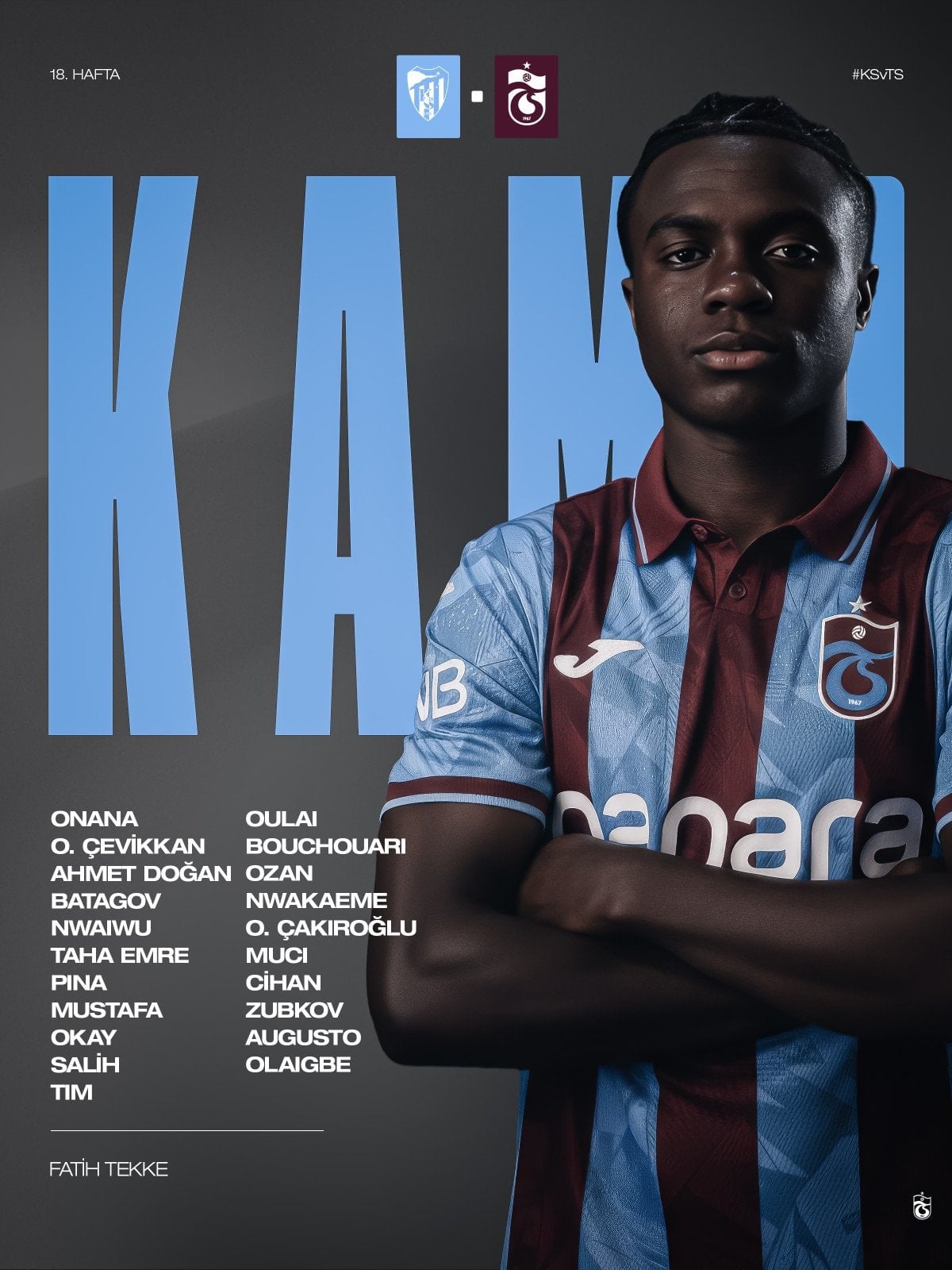 Bordo-mavili ekibin kafilesinde sakatlıkları bulunan Stefan Savic, Rayyan Baniya, Edin Visca, Afrika Uluslar Kupası’nda yer alan Paul Onuachu ile takımdan ayrılması gündemde olan Danylo Sikan yer almadı.