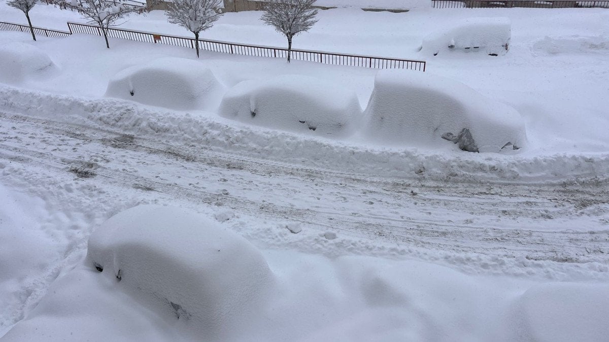 Kar kalınlığı ilçe merkezinde 1 metreye ulaştı, araçlar kara gömüldü.