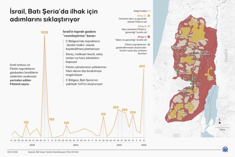 Açıklamada, “İsrail’in ahiren aldığı, Batı Şeria üzerindeki hukuka aykırı kontrolünü kapsamlı biçimde genişleten bir dizi kararı en güçlü şekilde kınıyoruz. Bu değişiklikler geniş kapsamlı olup Filistin topraklarını İsrail’in sözde ‘devlet arazisi’ olarak yeniden sınıflandırmakta, yasa dışı yerleşim faaliyetlerini hızlandırmakta ve İsrail idaresini daha da derinleştirmektedir” ifadesi yer aldı.