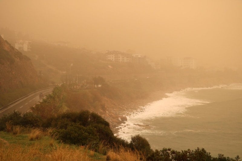 Akdeniz üzerindeki alçak basınç sistemiyle Sahra’dan taşınan çöl tozu, yaşamı da olumsuz etkiledi.