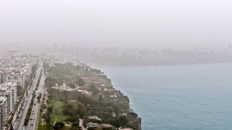 Türkiye’ye giriş yapan toz taşınımı, Antalya’da sabah saatlerinden itibaren etkili oldu. Hayatı olumsuz etkileyen toz taşınımı nedeniyle birçok noktadan kentin silüeti ve binalar görünmez hale geldi.