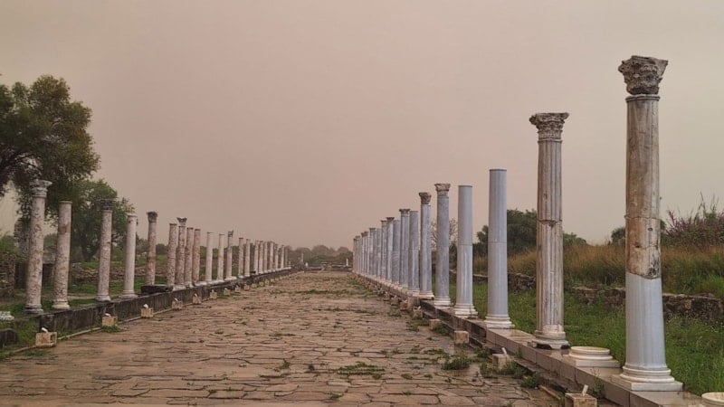 Manavgat ilçesinde de çöl tozu ile birlikte yağmur ve kısa süreli dolu etkisini gösterdi. Antik Side bölgesindeki yürüyüş yollarında çöl tozu, yağmur ve dolunun etkisiyle çamurlu su birikintileri oluştu.