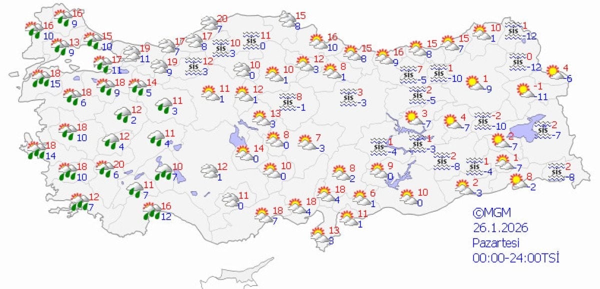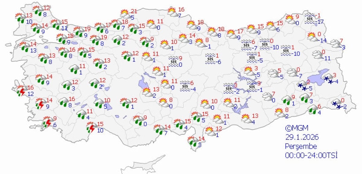 Bugün ülke genelinde parçalı ve çok bulutlu bir hava hakim.