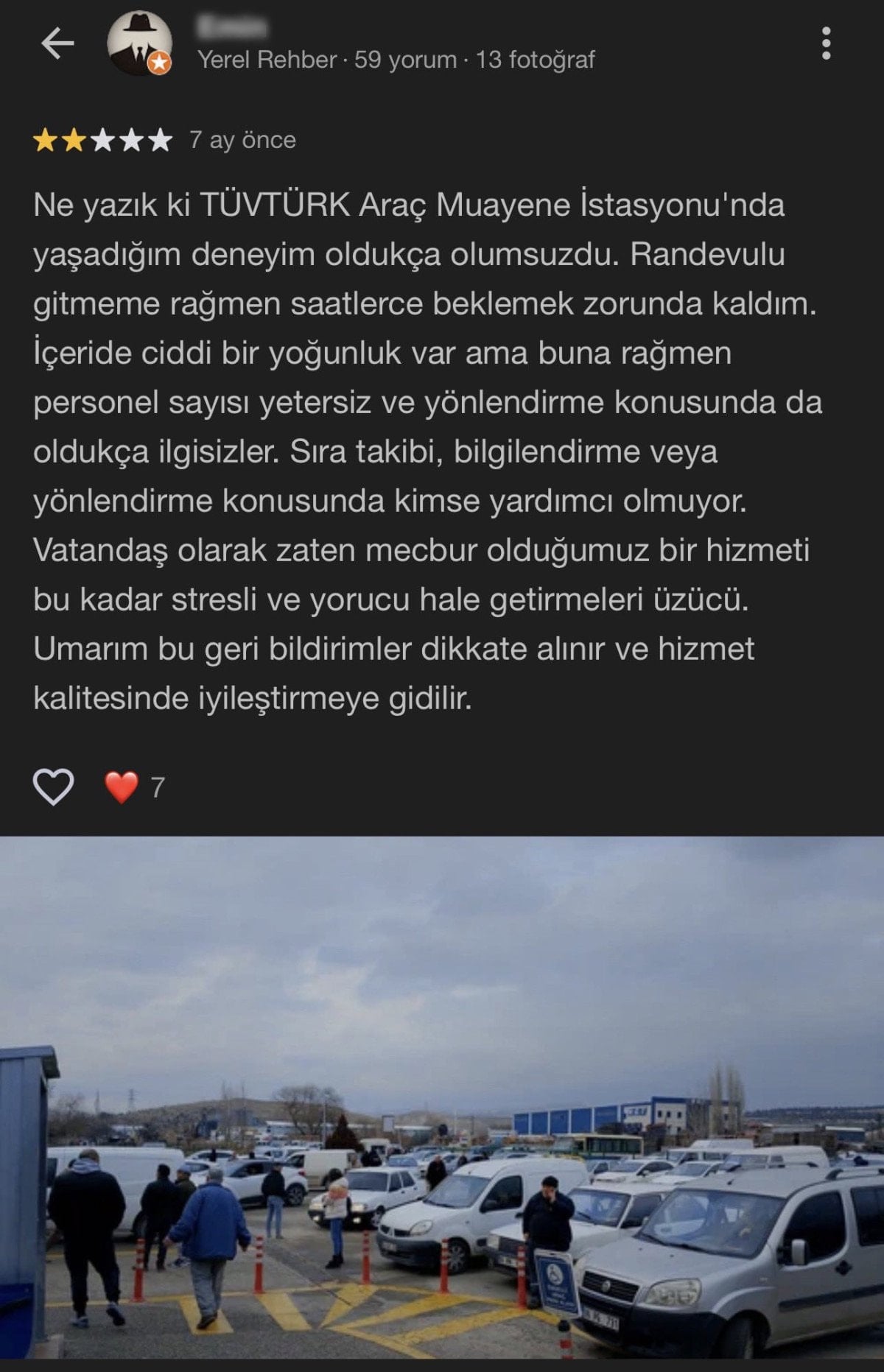 Ne yazık TÜVTÜRK Araç Muayene İstasyonu’nda yaşadığım deneyim oldukça olumsuzdu. Randevulu gitmeme rağmen saatlerce beklemek zorunda kaldım.