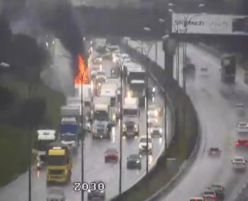 Olay yerine ulaşan polis ekipleri, 2 şeridi trafiğe kapatarak güvenlik önlemi aldı. İtfaiye ekipleri yaklaşık yarım saat süren yoğun çalışmalar sonucu alevleri kontrol altına aldı ve yangın tamamen söndürüldü.