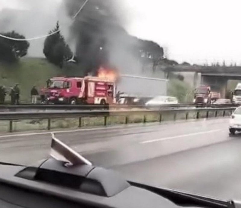 Şoför Sarıaslan durumu fark ederek aracı emniyet şeridine çekti ve itfaiye ile polis ekiplerine haber verdi.