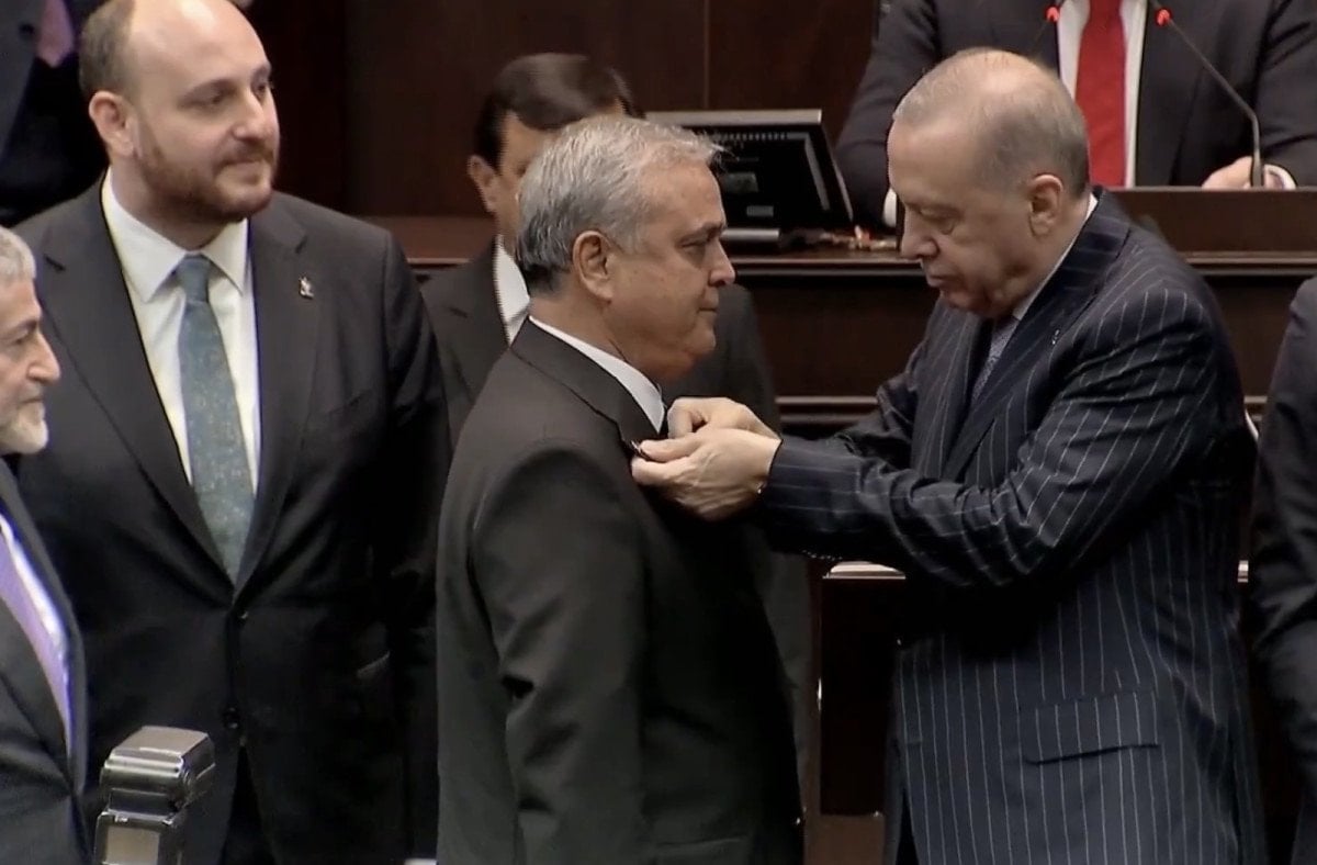 DEVA’dan AK Parti’ye geçen Milletvekili İrfan Karatutlu, rozeti takıldıktan sonra “Ben zaten aklen ve vicdanen buradaydım, şimdi de bedenen geldim.” dedi.
