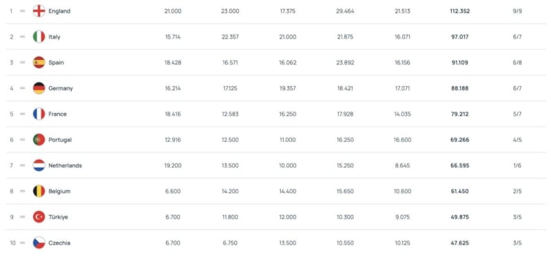 İşte güncellenen ülke puanları sonrası yeni sıralama: