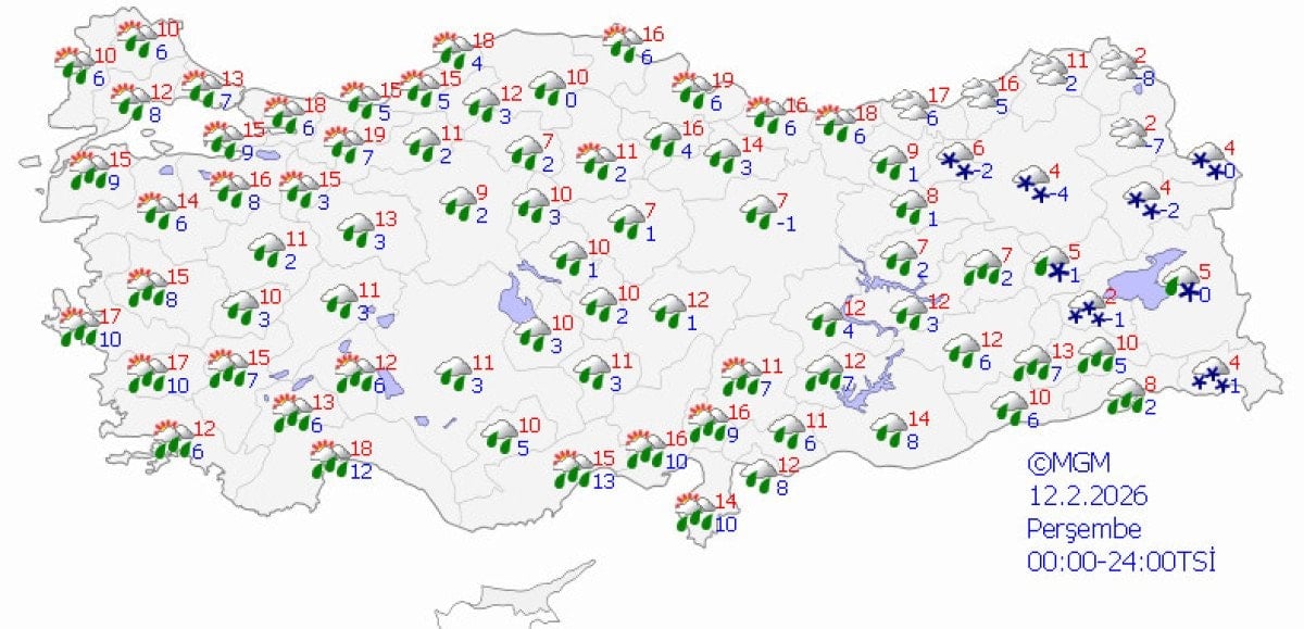 Kar yağışı yüksek rakımlarda sınırlı kalırken, sıcaklıklar kuzey, iç ve batı kesimlerde 3-5 derece artarak mevsim normallerinin üzerinde seyredecek.