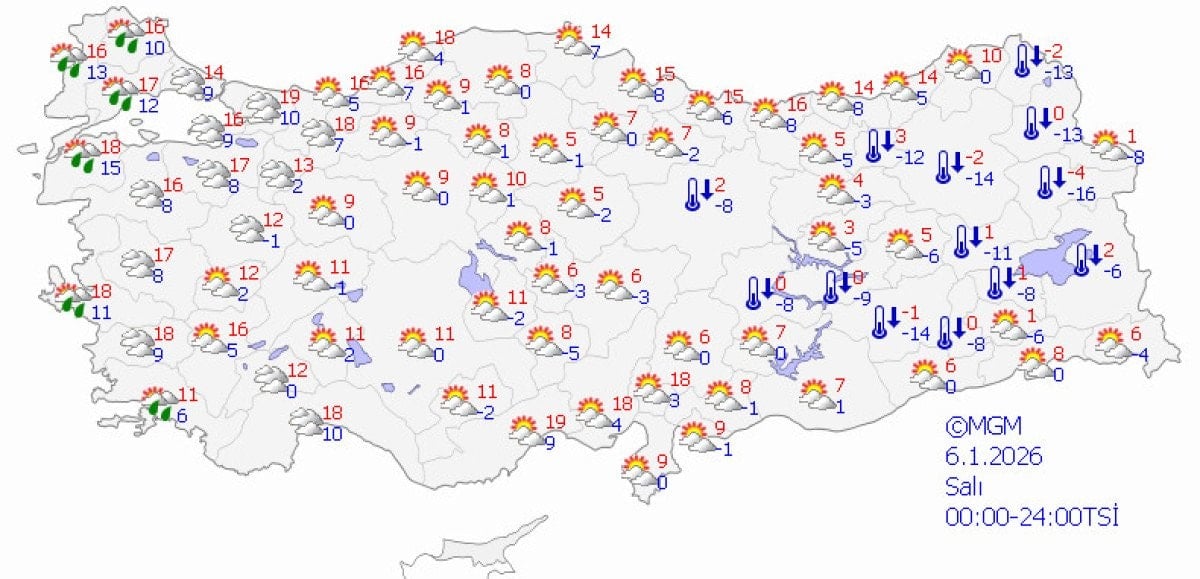 Ülke genelinde soğuk hava etkili olurken, batı ve kıyı bölgelerde hafif ısınma gözlense de iç ve doğu kesimlerde düşük sıcaklıklar ve don riski devam ediyor.