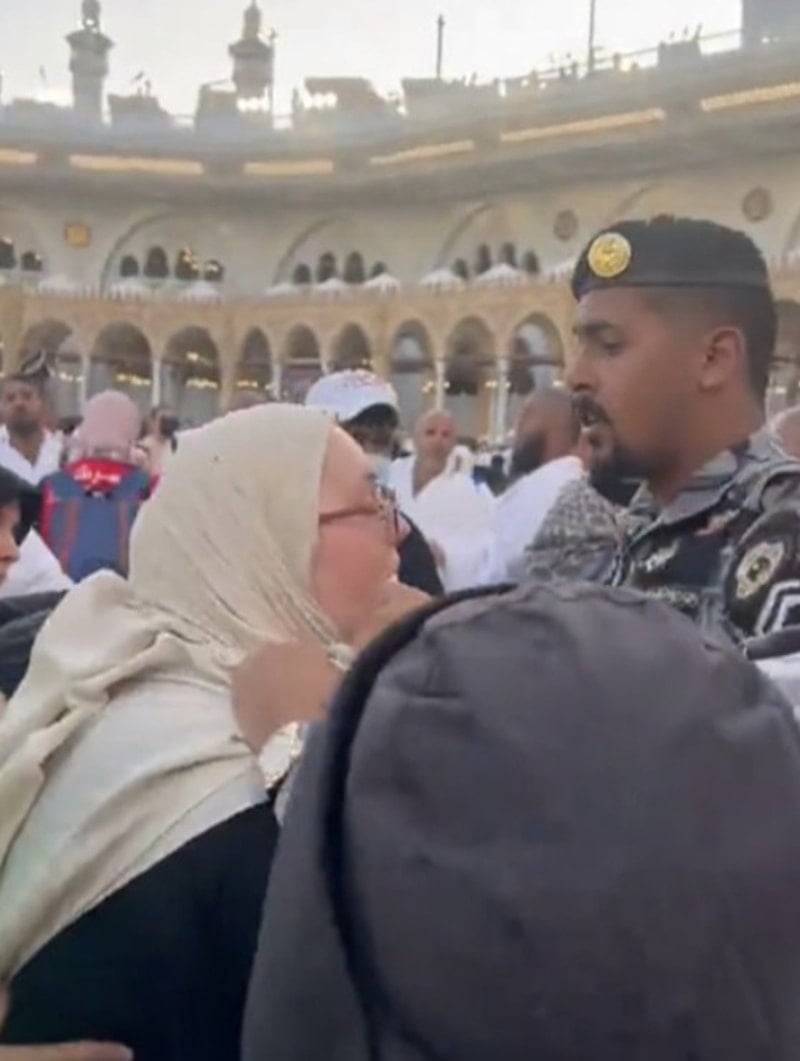 Hatıra olması için Kabe’nin örtüsünü makasla kesen ve fark edilen kadın, bölgeye gelen ekipler tarafından gözaltına alındı.