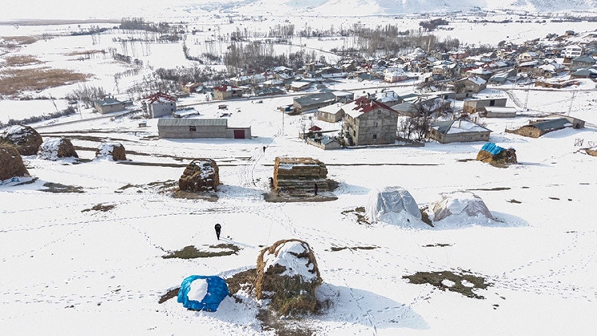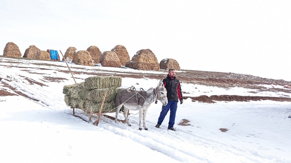 Mahalle sakinlerinden hayvancılıkla uğraşan Alper Hakan, yaz aylarında biçtikleri otları kış için depoladıklarını belirterek, “Yazın biçtiğimiz otları köyün yakınlarında topluyoruz. Kışın koyunları ağılda besliyoruz. Yetmediği zaman yem almak zorunda kalıyoruz. Otları bazen kızakla, bazen de sırtımızda taşıyoruz. Kışımız zor geçiyor ama mecburuz.” dedi.