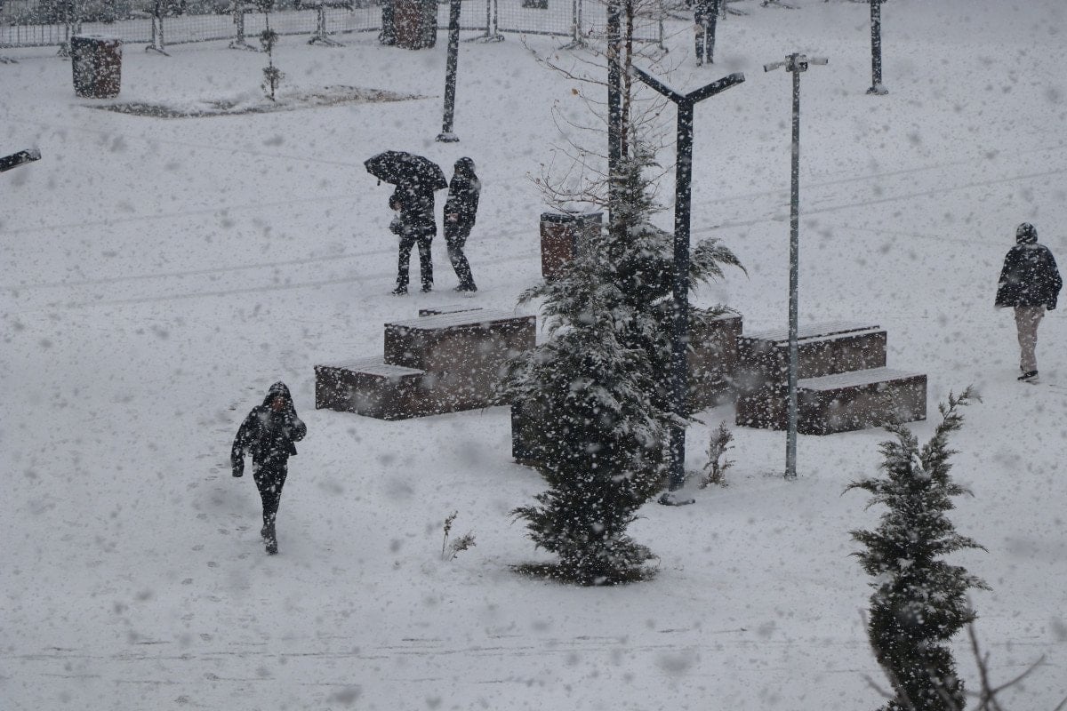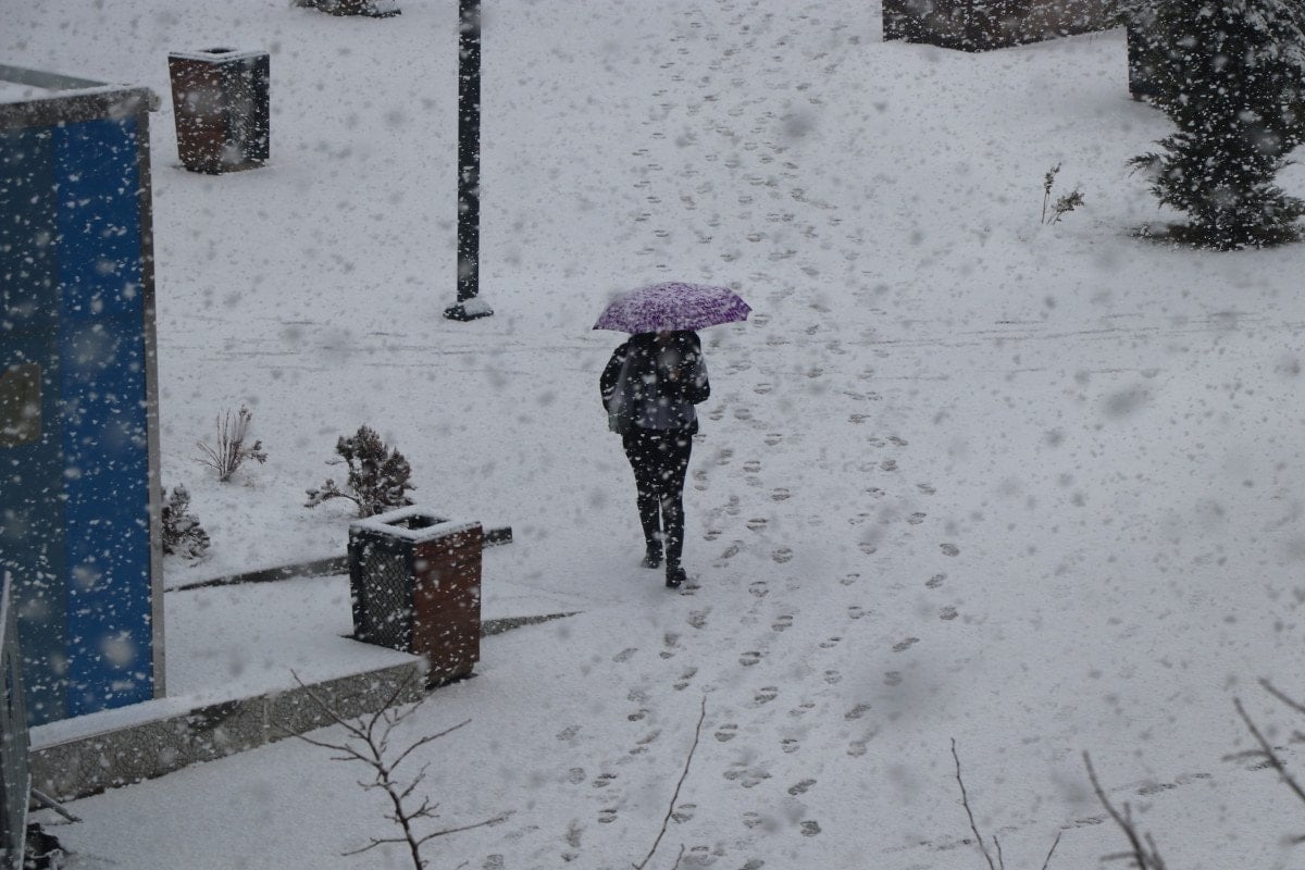 Kapanan yolların açılması için Büyükşehir Belediyesi karla mücadele ekipleri çalışma başlattı. Yağışla birlikte kentte yer yer sis de etkili oldu.