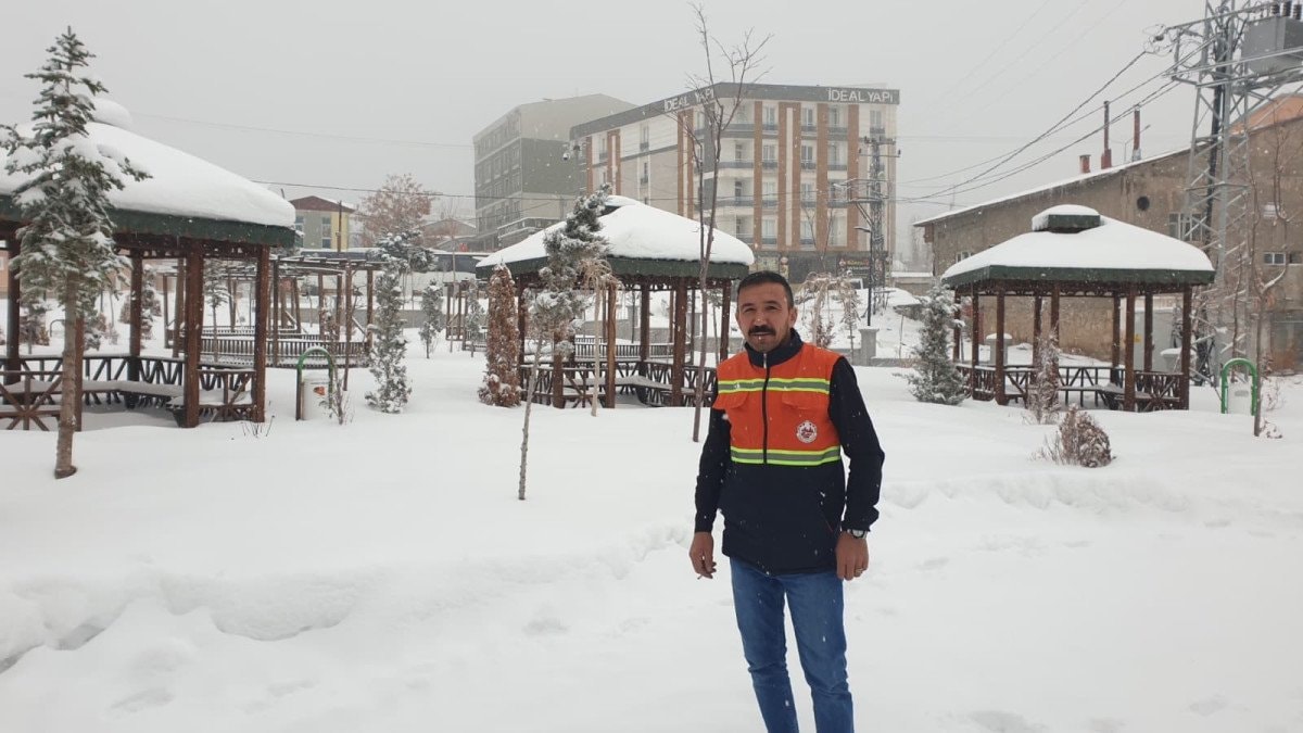 İlçede park halindeki araçlar kara gömülürken, belediye ekipleri trafikte aksama yaşanmaması için kar temizliği yaptı.