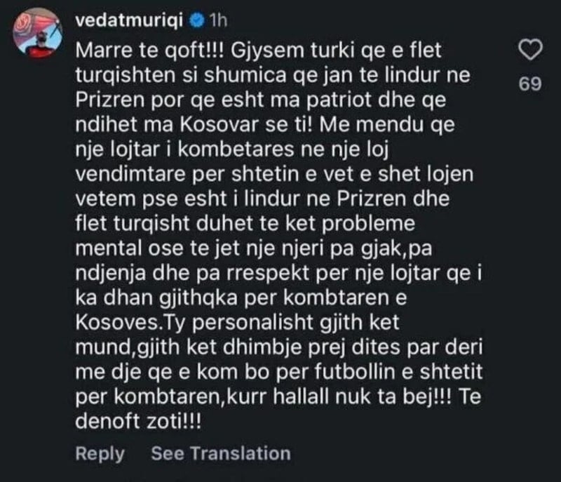Ülkemizde Giresunspor, Gençlerbirliği, Rizespor ve Fenerbahçe formalarını giyen Vedat Muriç, Kosova’nın taktiklerini Türkiye ile paylaştığını iddia eden bir taraftara tepki gösterdi.