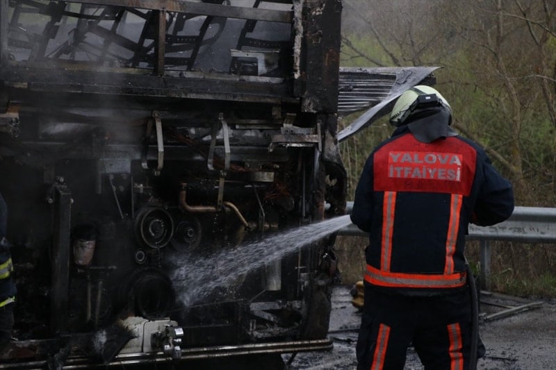 Kısa sürede motor bölümünü saran alevlere Yalova ve Bursa’dan sevk edilen itfaiye ekipleri müdahale etti. Ekiplerin yoğun çabalarına rağmen otobüs kullanılmaz hale geldi. Olayda can kaybı veya yaralanma yaşanmadı.