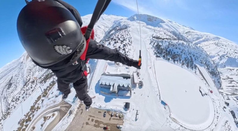 Cengiz Koçak ve yamaç paraşütü sporcusu Emre Aktepe, telesiyejle merkezin zirvesine çıkarak havalanıp wingsuit ile atlayış gerçekleştirdi. Koçak, yaklaşık 500 metre yükseklikten kendini boşluğa bırakarak serbest düşüş yaptı. Aksiyon kameralarına yansıyan anlar izleyenlere heyecan dolu dakikalar yaşattı.