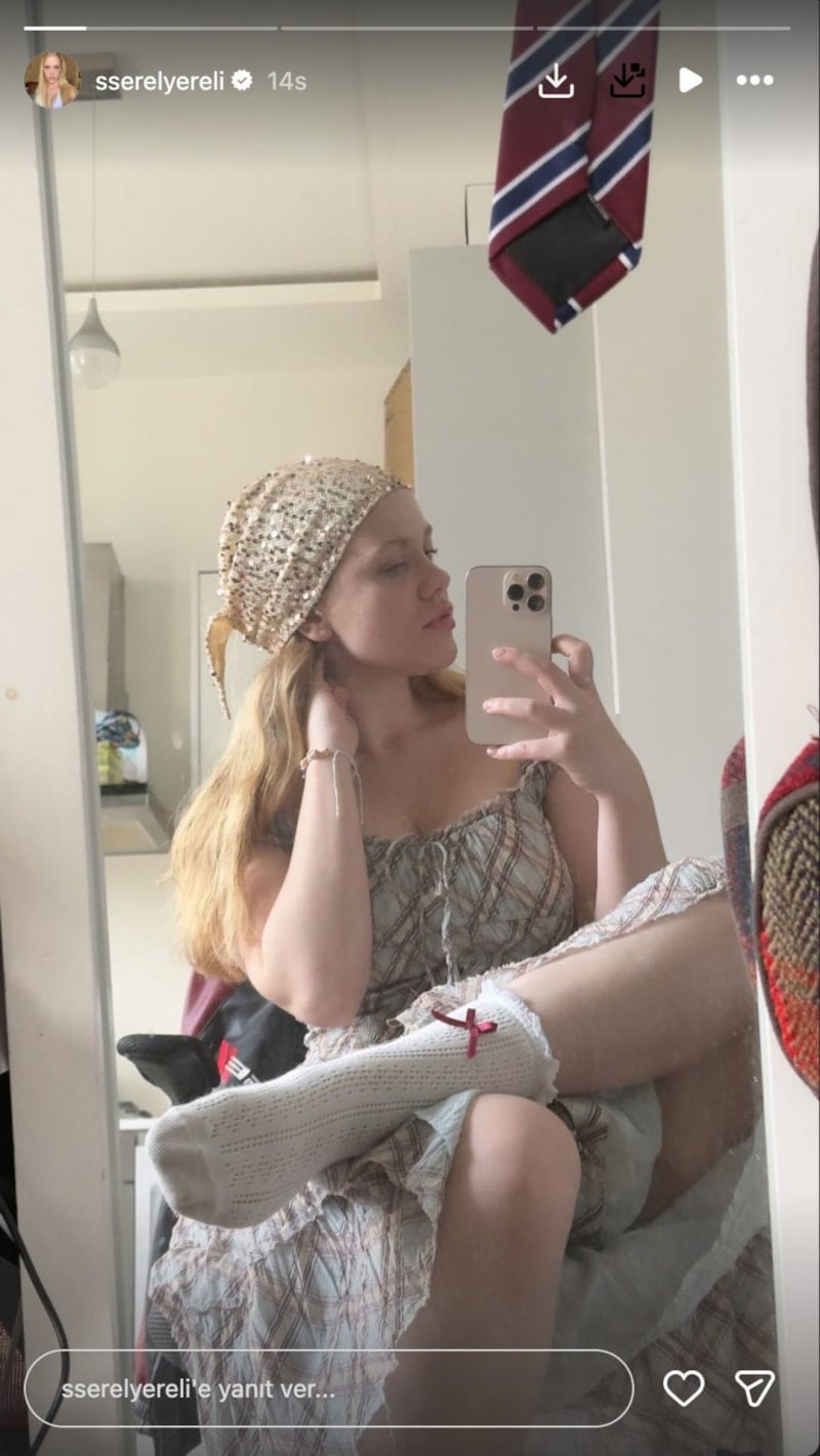 Ayna karşısında poz veren ünlü oyuncuya, takipçilerinden beğeni yağdı.