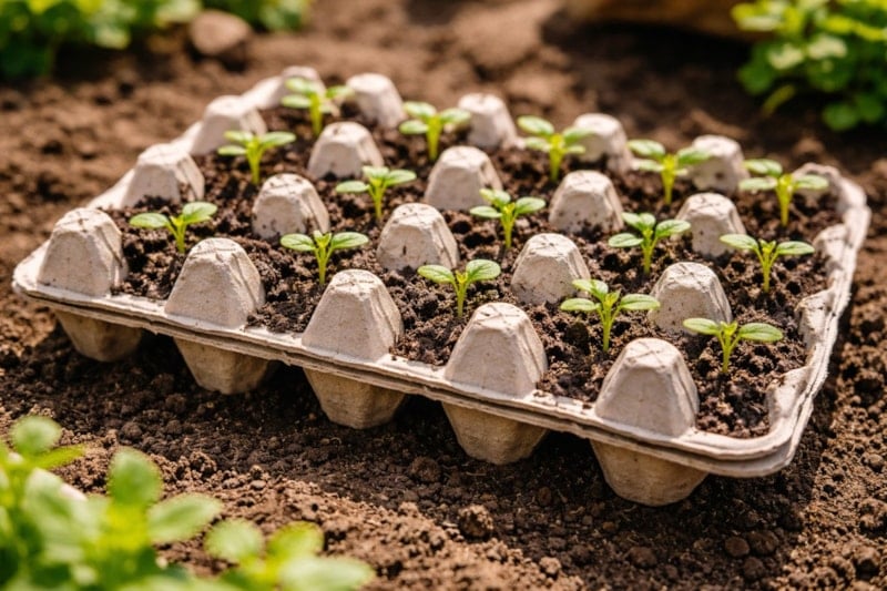 Karton yumurta kutuları kağıt bazlı olduğu için doğada kolayca çözünür. Fideler büyüdüğünde kartonla birlikte toprağa gömülebilir. Bu sayede kökler zarar görmeden gelişimini sürdürür.