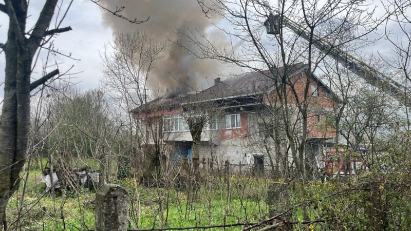 Patlamanın etkisiyle evde bir anda dumanlar ve sonra da alevler yükseldi.
