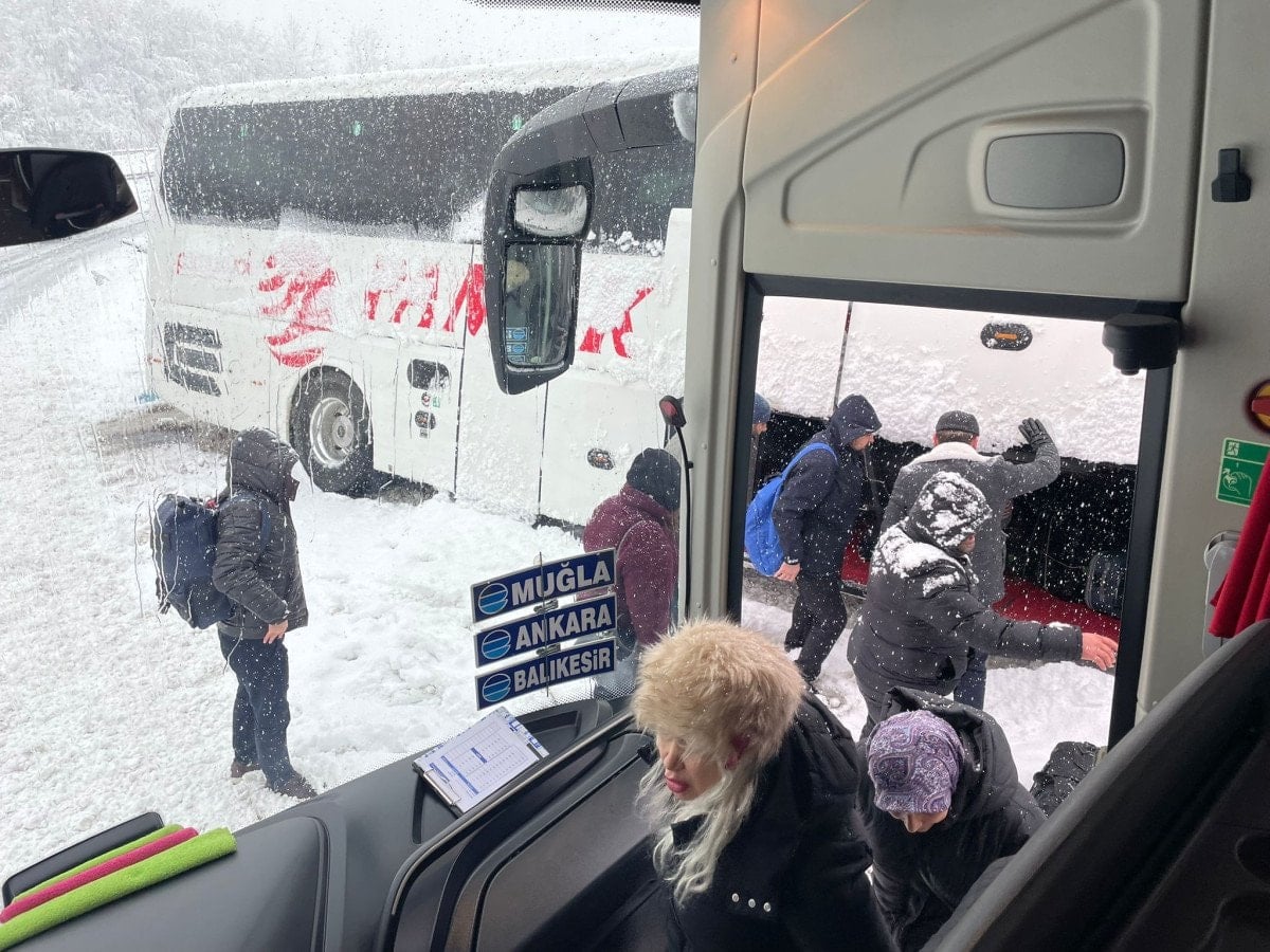 Yoğun kar nedeniyle zaman zaman trafik durma noktasına gelirken, 67 ADA 081 plakalı yolcu otobüsü kaygan zemin sebebiyle kontrolden çıktı. Otobüsün kaydığı anlar, manzara çekmek isteyen bir yolcu tarafından cep telefonu kamerasıyla kaydedildi.